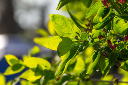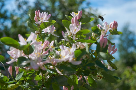 Blooming spring honeysuckle plant in the garden