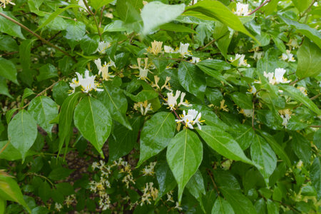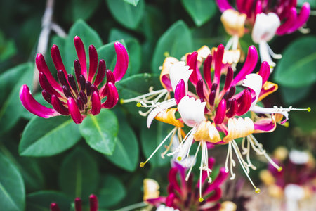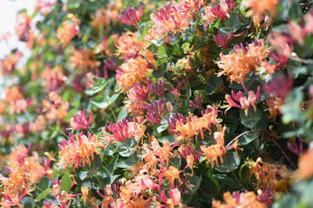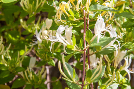 Lonicera periclymenum or common honeysuckle plants blooming flowers in spring