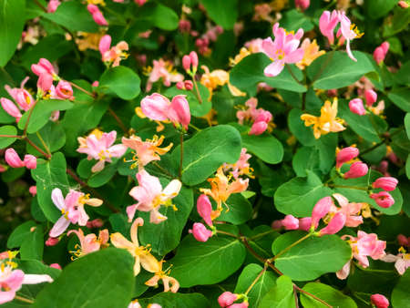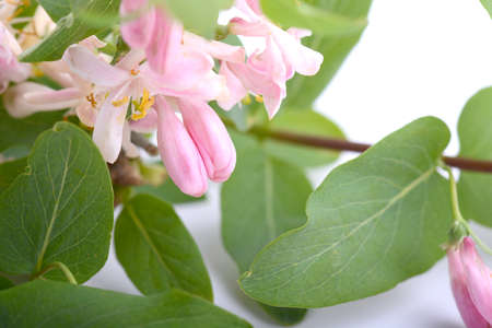 Honeysuckle bush background with pink flowers. Studio Photo