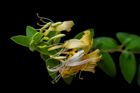 honeysuckle isolated on black background