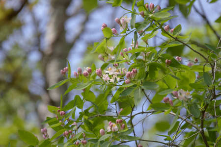 Detail of wild honeysuckle flowers blooming