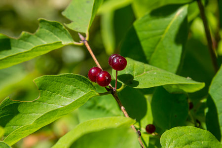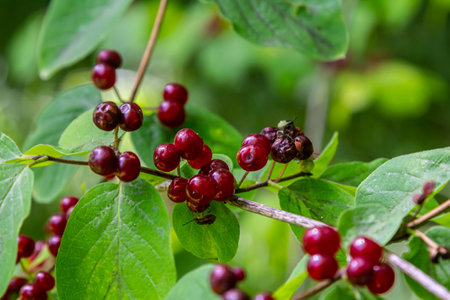 Honeysuckle tree green branch with berry.