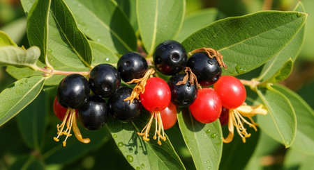 Goat-leaf Honeysuckle berries in the garden