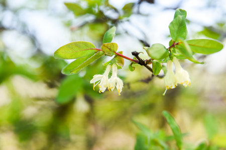 Lonicera caerulea flowers, close up shot local focus