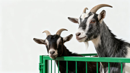 Happy styled goats on solid pastel color background fashion studio shot with copy space