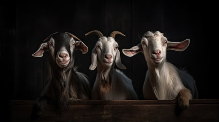 Several black goats gather closely in a dimly lit environment showcasing their unique features and expressions in a captivating manner.