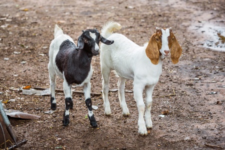 Breeding goats in a farm. Livestock exploitation in Spain.