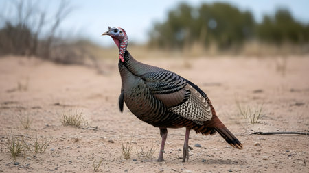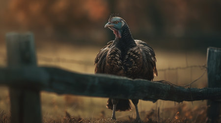Majestic turkey strolling in cornfield post harvest, a captivating and picturesque scene