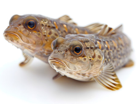 Close-up of a pair of fish on a white background.