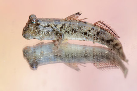 Reflection of the beauty of a barred mudskipper. This fish, which is mostly done in the mud, has the scientific name Periophthalmus argentilineatus.