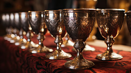 Medieval goblets in the Orthodox Church, close-up