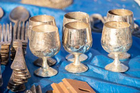 Silver glasses and forks old antique, silverware antiques Soviet