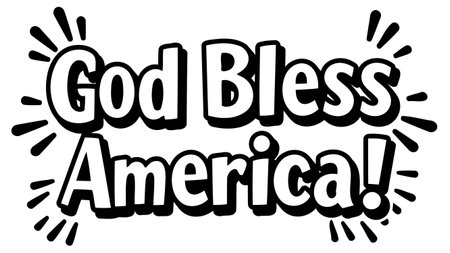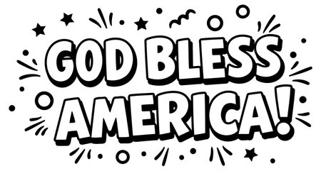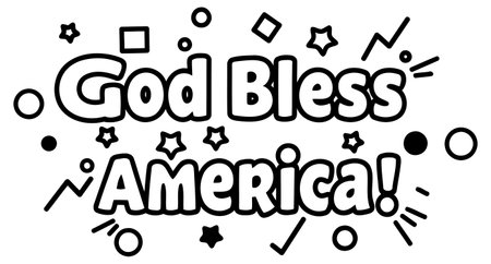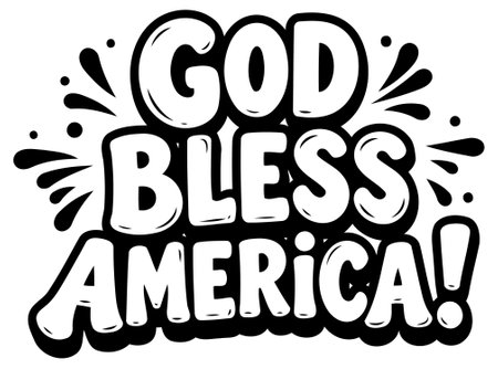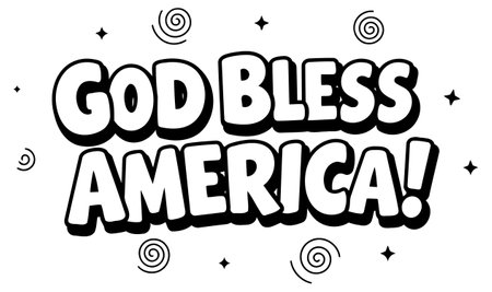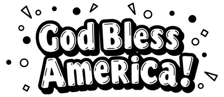 Bold. cartoon-style lettering for God Bless America with radiating design elements. suitable for apparel. merchandise. social media content or editorial use.
