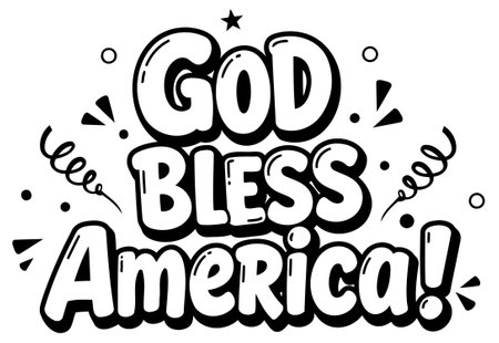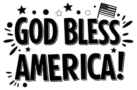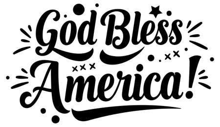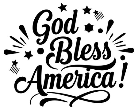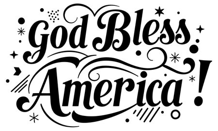 Stylish. bold lettering of God Bless America. with decorative elements in a classic print style. Suitable for use in advertising. social media. and various print applications.