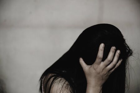 Asian woman in emotional distress experiencing depression, loneliness, tiredness, weakness, sadness