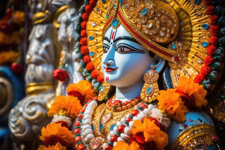 Beautifully decorated Hindu Lord Balarama idol during the Rath Yatra Festival.