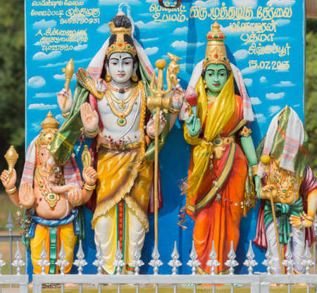 SINGAPORE - FEB 24 : Statues in Sri Veeramakaliamman temple in Little India, Singapore on February 24 2018 It is one of the oldest temples in Singapore.