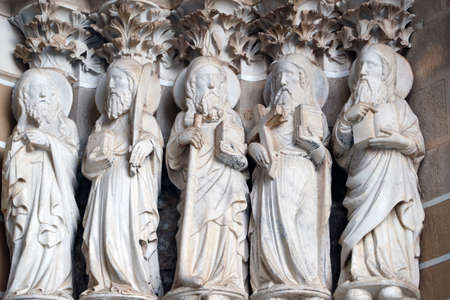 Apostle sculptures in the main gateway of the Cathedral of Evora. Portugal.