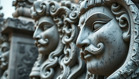 Detailed stone sculpture of an ancient deity
