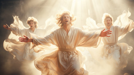 Three angels messages of Revelation 14 prophecy the final warning to humanity Generative AI Illustration.