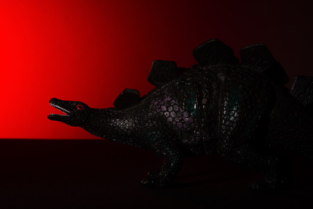 Stegosaurus with spot light on the head and red light on background no logo and no trademark
