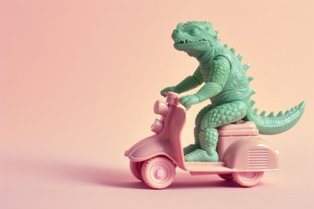 Green Scaled Creature Figurine Riding a Miniature Pink Scooter.