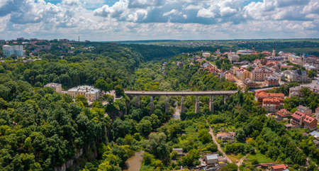 The Novoplanovsky bridge over the Smotrytsky canyon in Kamianets-Podilskyi, Ukraine.