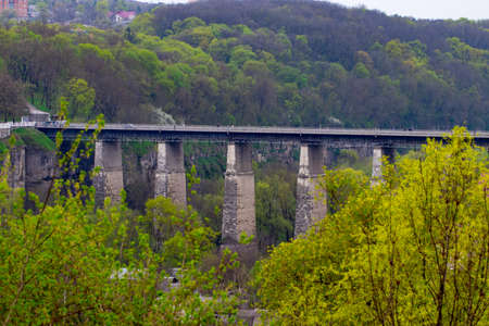 The Novoplanovsky bridge over the Smotrytsky canyon in Kamianets-Podilskyi, Ukraine.