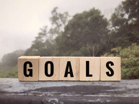 Motivational and inspirational word - GOALS written on wooden blocks. Blurred styled background.
