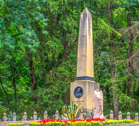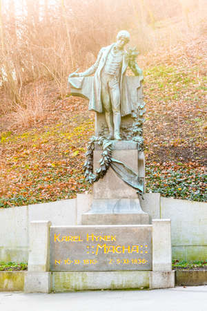 PRAGUE, CZECH REPUBLIC - FEBRUARY 08, 2020: Monument of Karel Hynek Macha, Czech poet. Petrin Hill, Prague Czech Republic