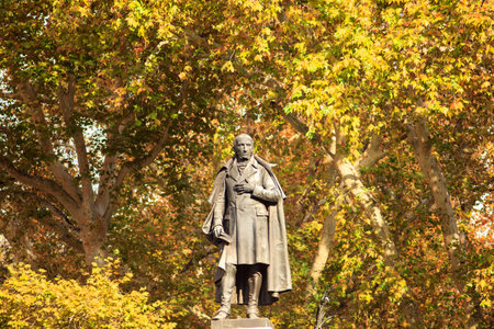 London. November 2018. A view of the lord Byron statue on Park lane in London