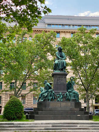 Frankfurt, Germany, June 3rd - 2018, Monument of Johann Wolfgang von Goethe at the Goetheplatz in Frankfurt downtown.