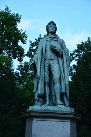 Schiller monument at the Taunusanlage park in Frankfurt am Main, Germany. The monument by sculptor Johannes Dielmann was unveiled on May 9, 1864.