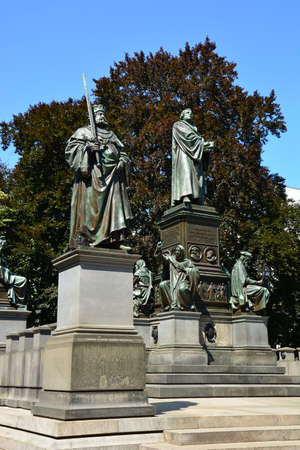Luther monument in front of the Kaufmannskirche in Erfurt, Thuringia