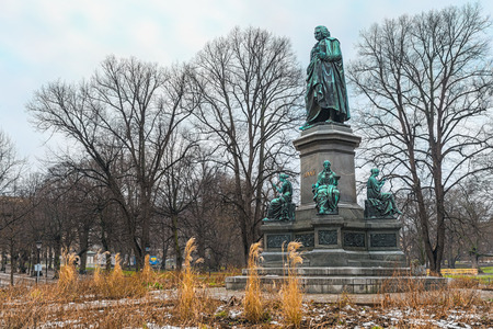 STOCKHOLM, FEBRUARY 04 Carl Linnaeus Linné Monument in Humlegarden from the side, on February 04, 2014, Stockholm, Sweden