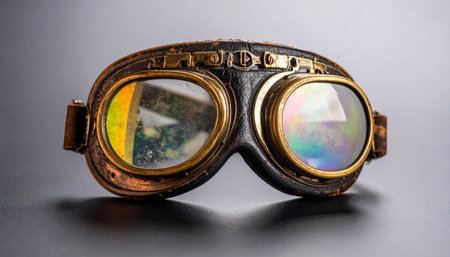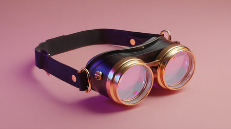 A pair of meticulously crafted steampunk goggles rests on a dark surface, their iridescent lenses reflecting a world of untold adventures. This accessory is a portal to a retro-futuristic realm of invention, exploration, and imagination, perfect for any adventurer or time traveler.