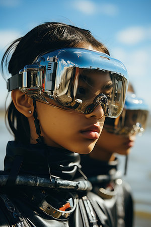 Portrait of a young woman wearing goggles