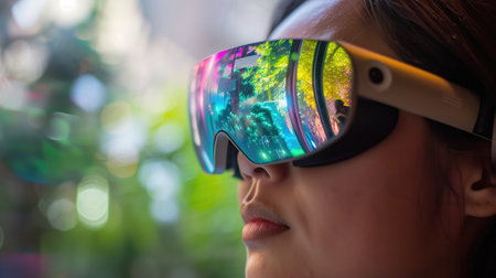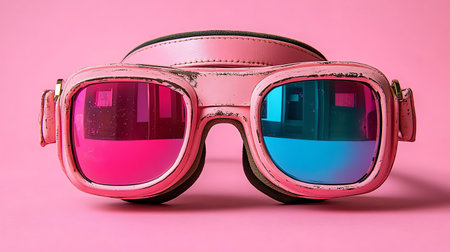 A captivating image of stylish futuristic glasses with vibrant lenses, showcasing a blend of color plays and modern design elements in a creative setting.