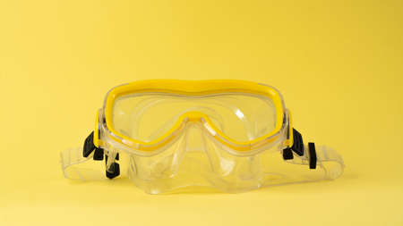 Yellow scuba diving mask on a yellow background, color aesthetics