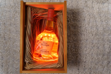 Tyumen, Russia-November 27, 2021: Cognac Lheraud Vieux Millenaire is a 25-year-old cognac with a strength of 43 percent