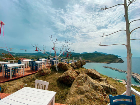 Gokceada,Canakkale,Turkey May 28, 2023:Fish restaurant in Kalekoy Village, Gokceada. Gokceada which is the largest island of Turkey