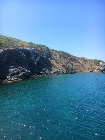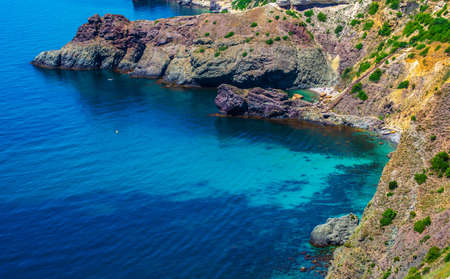 Black Sea rocky coastline seascape near Balaklava. Crimea, Russia