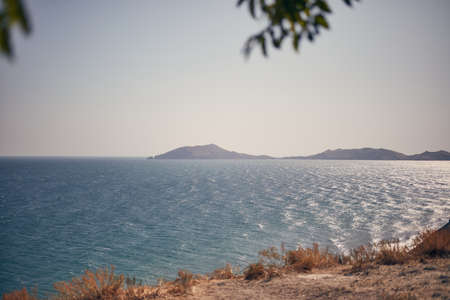 Aegean Sea and Tinos island on the horizon, Greece. Greek landscape - seascape