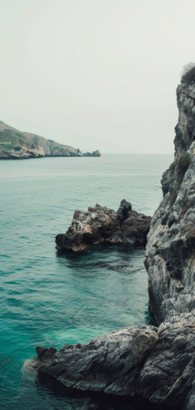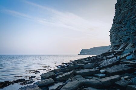 Beautiful seascape. Amazing composition of nature with mountains and cliffs.