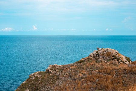 Fiolent cape, sea near Sevastopol. Sunny view of the Black Sea
