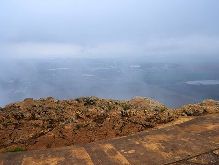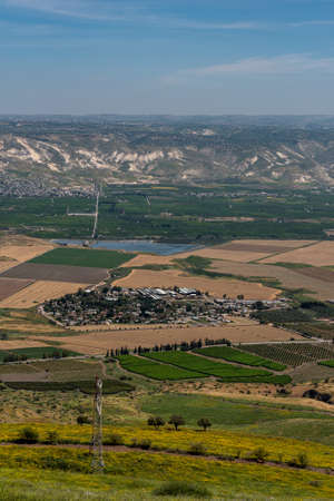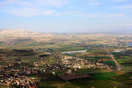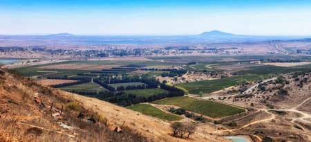 Panoramic view of the Arbel Valley, with countryside and the Sea of Galilee. Northern Israel