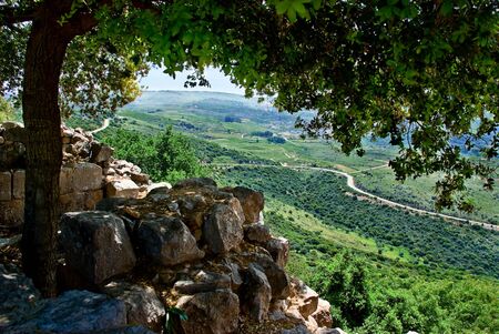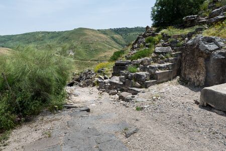 View of the archaeological site of ancient Jewish city on the hill in Gamla nature reserve, Israel