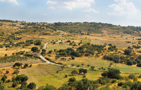 Cyprus countryside landscape with yellow crops, green agricultural fields and olive trees