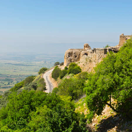Remnants of castle on the Golan Heights near the Israeli border with Syria. The Nimrod Fortress, National Park of Israel, scenery on the slopes of mount Hermon.