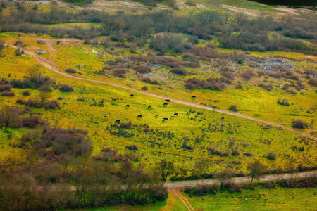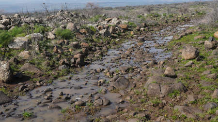 Sea of Galilee .Landscape Of North Galilee In Early winter . Migratory birds. Israel.